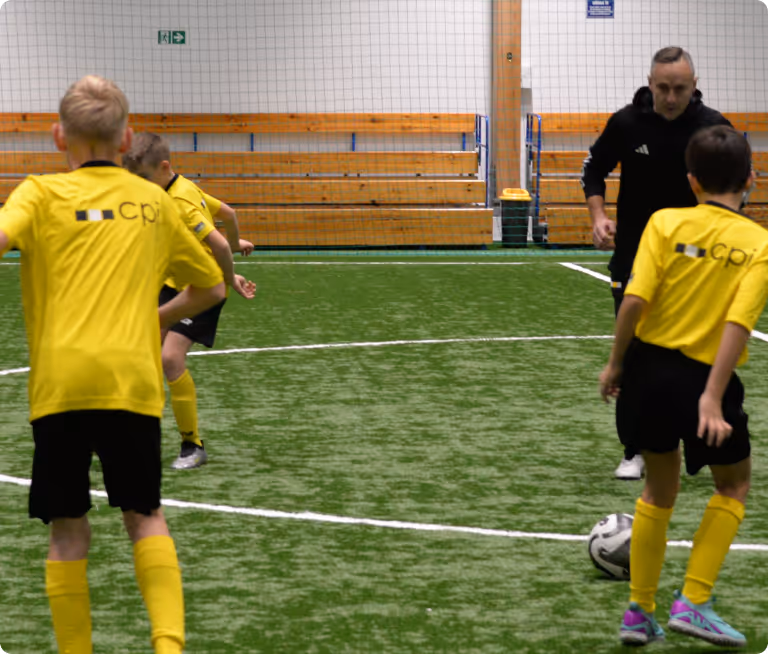 Na jednego trenera przypada maksymalnie 10 dzieci. Trener widzi każdego zawodnika, koryguje błędy na bieżąco i zna mocne strony Twojego dziecka. U nas nie ma sytuacji, gdzie 20-30 dzieci jest pod opieką jednej osoby.